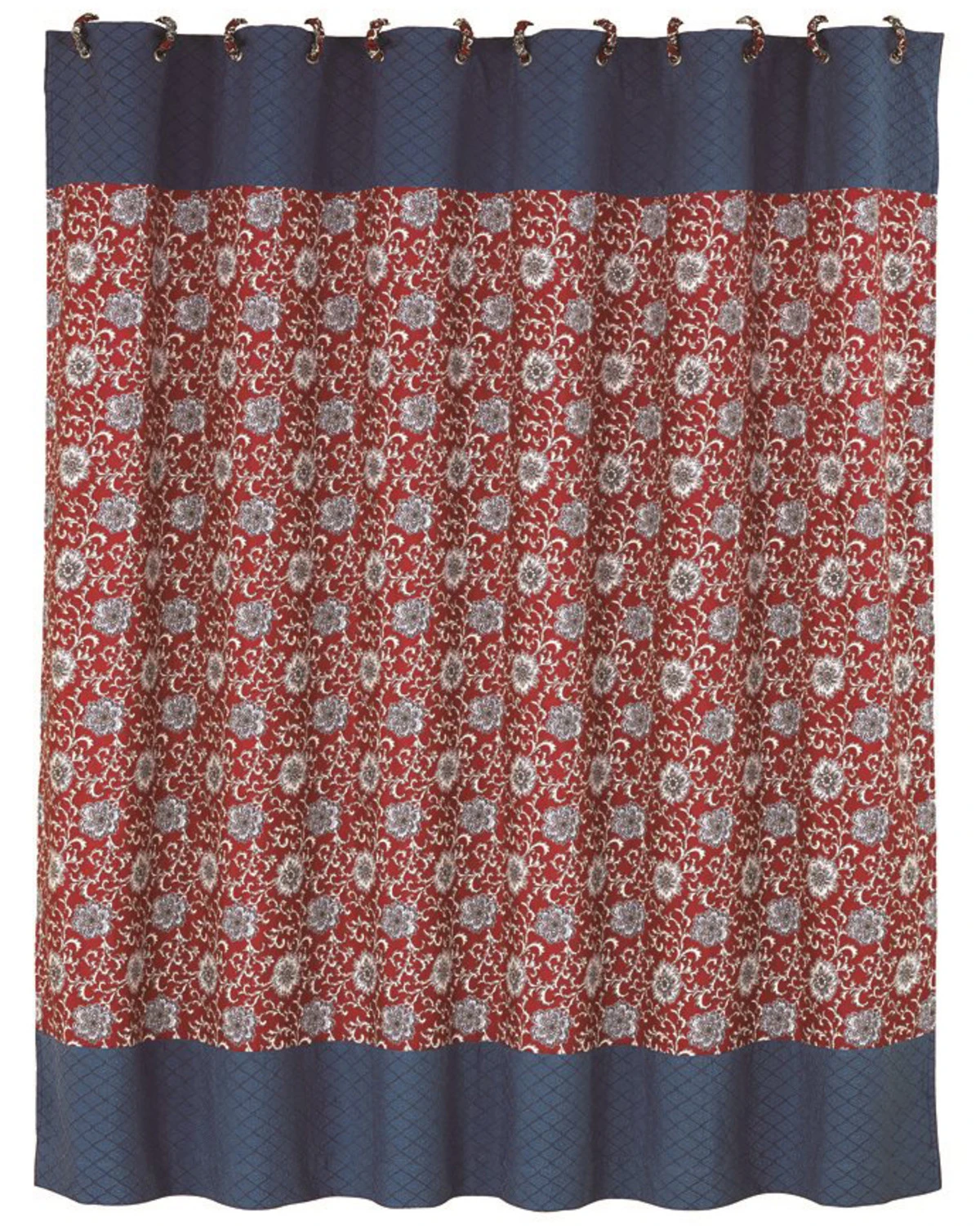 Accent your bathroom with this Bandera shower curtain from HiEnd Accents. Measures 72″ x 72″ and includes color coordinating rings. Part of the Bandera collection by HiEnd Accents, a company that specializes in only the best western and lodge home decor.