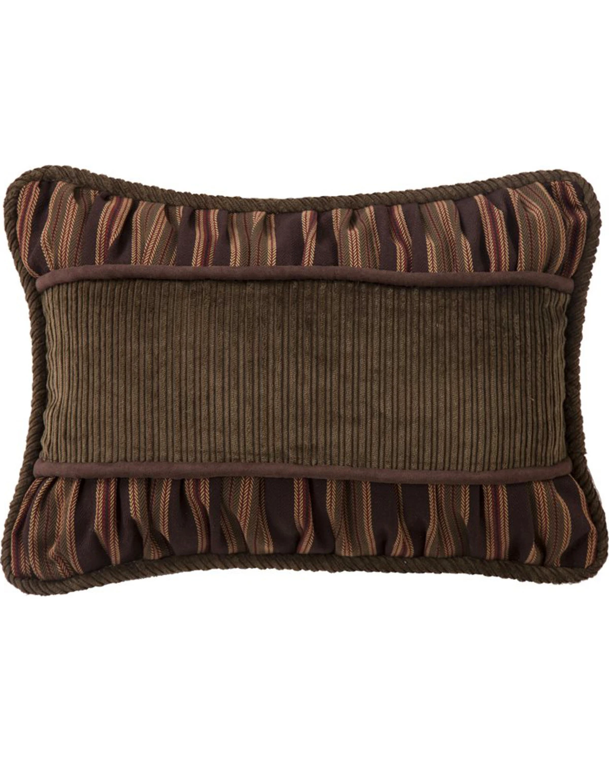 This pillow from HiEnd Accents features a unique corduroy material center along with patterned ruching details on the edges. Measures 14X20″.Â