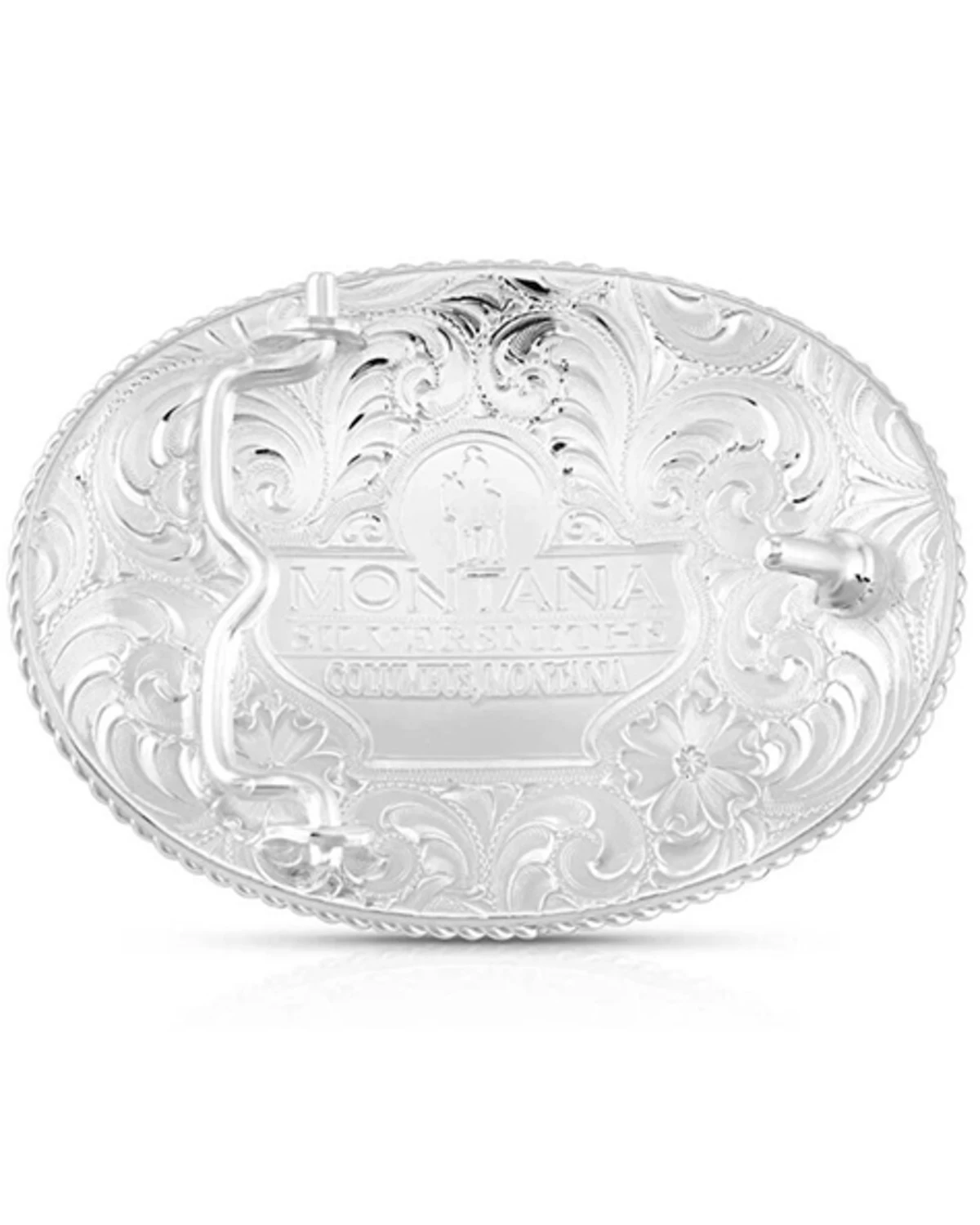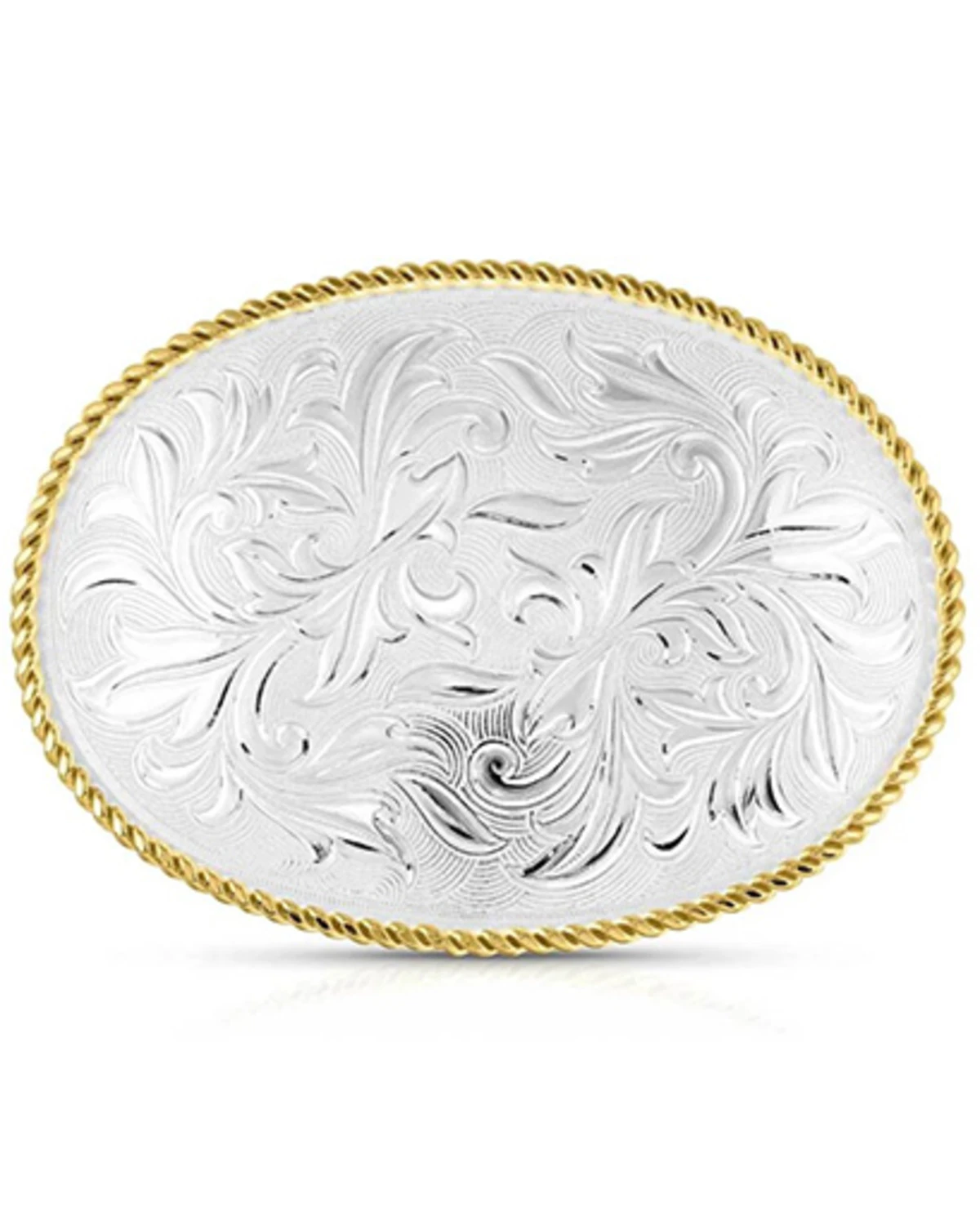 - Silver-toned filigree engraved buckle with gold roped border