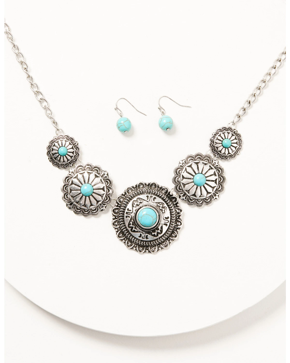 Prime Time Jewelry Women’s 5 Concho Necklace And Earrings Set