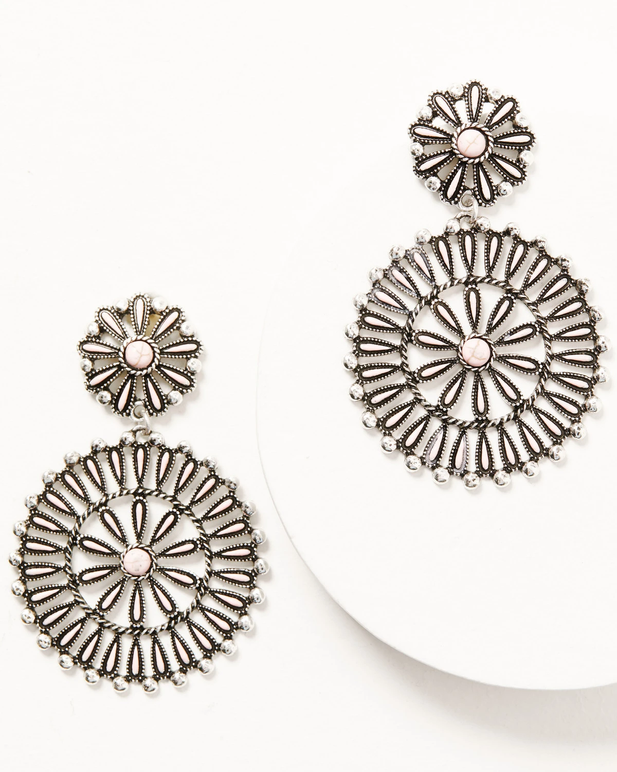 Prime Time Jewelry Women’s Concho Silver & Pink Chandelier Earrings