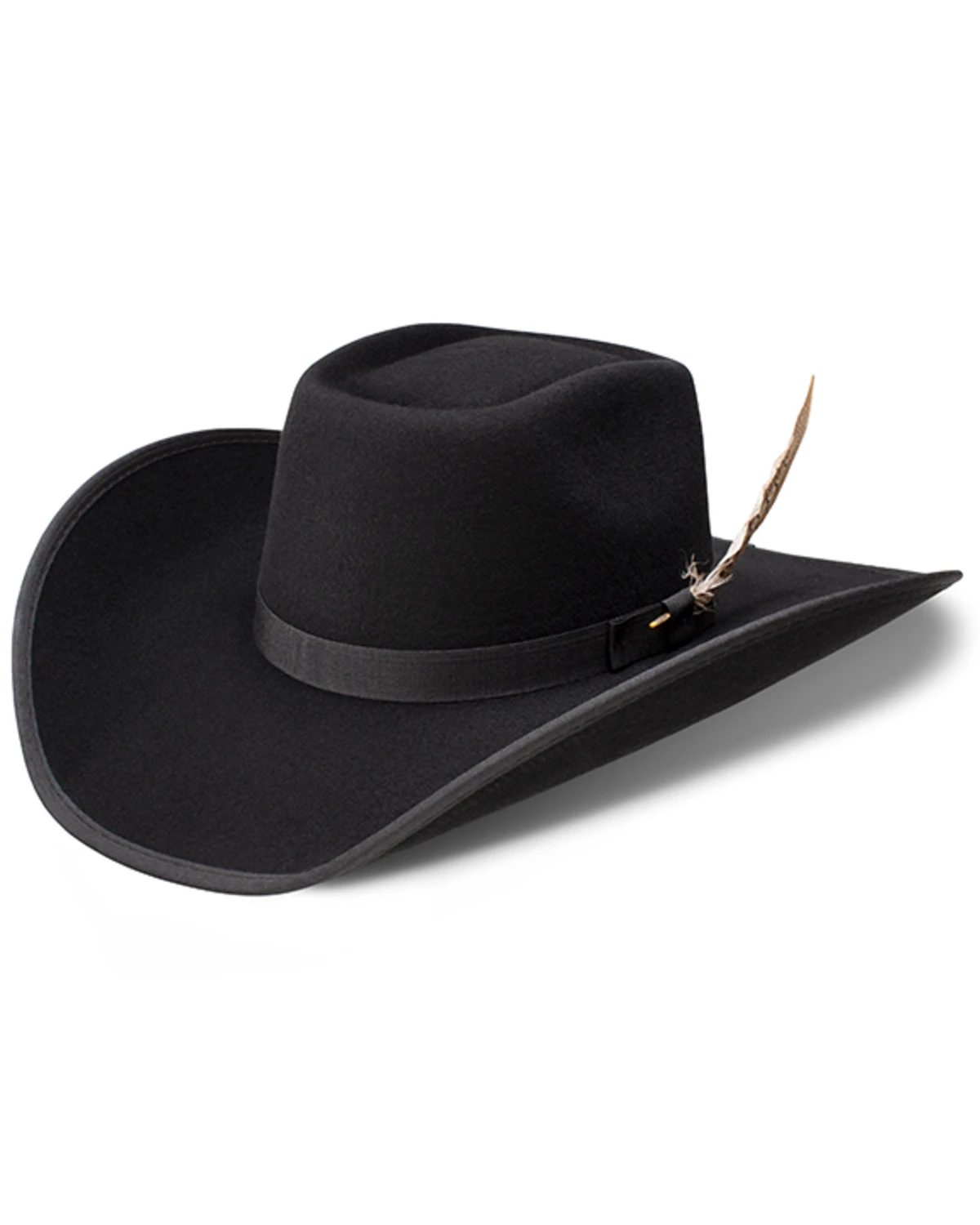 The Holt JR hat by Resistol is a part of the “Youth Collection”. This collection of Resistol hats is designed for Children. The Durable premium wool can handle rough and tough wear and the elastic fit band helps ensure a snug fit. The bound edge and feather in the hat band give this hat a great western look, your cowgirl or cowboy will look and feel great in this Holt Jr wool hat.