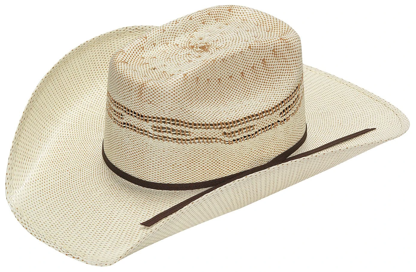 A true western hat for your little cowpoke! This straw cowboy hat features a vented hat crown. Ribbon hat band boasts “Twister” hat tack. Boxed cattleman crease hat crown measures 3 3/4″. Brim measures 3 3/4′. Imported.
