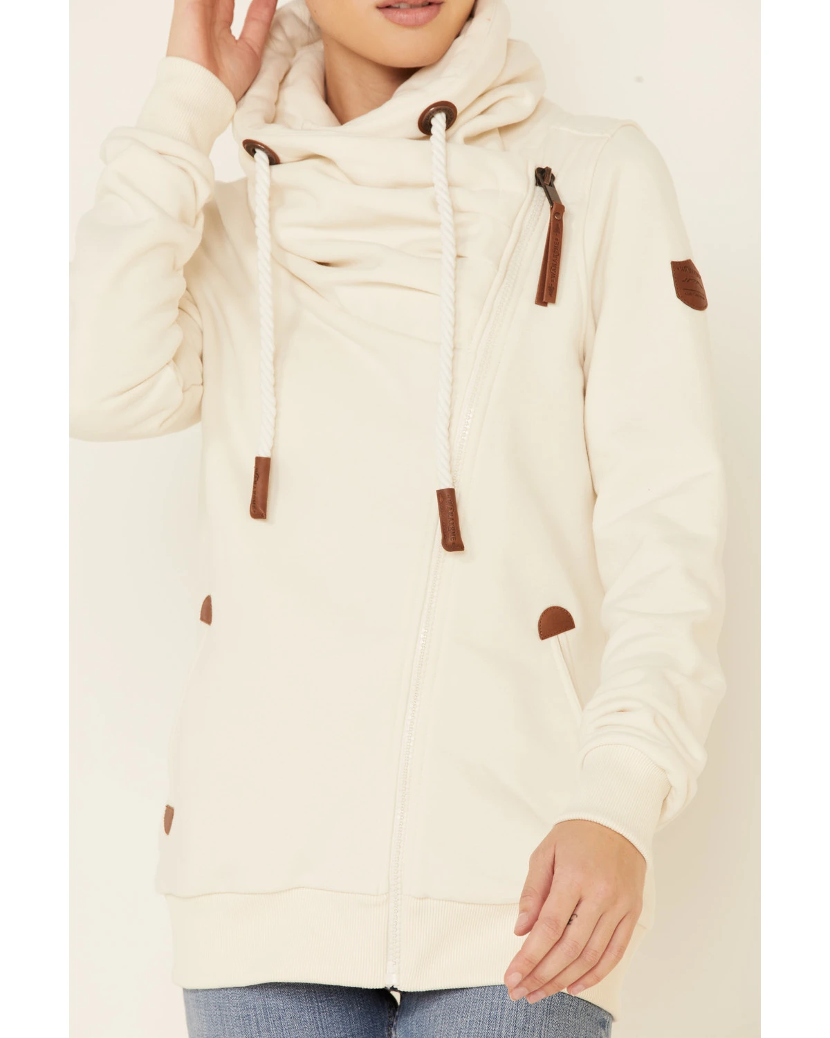 Wanakome Women’s Oatmeal Hestia Asymmetrical Zip-Front Hoodie
